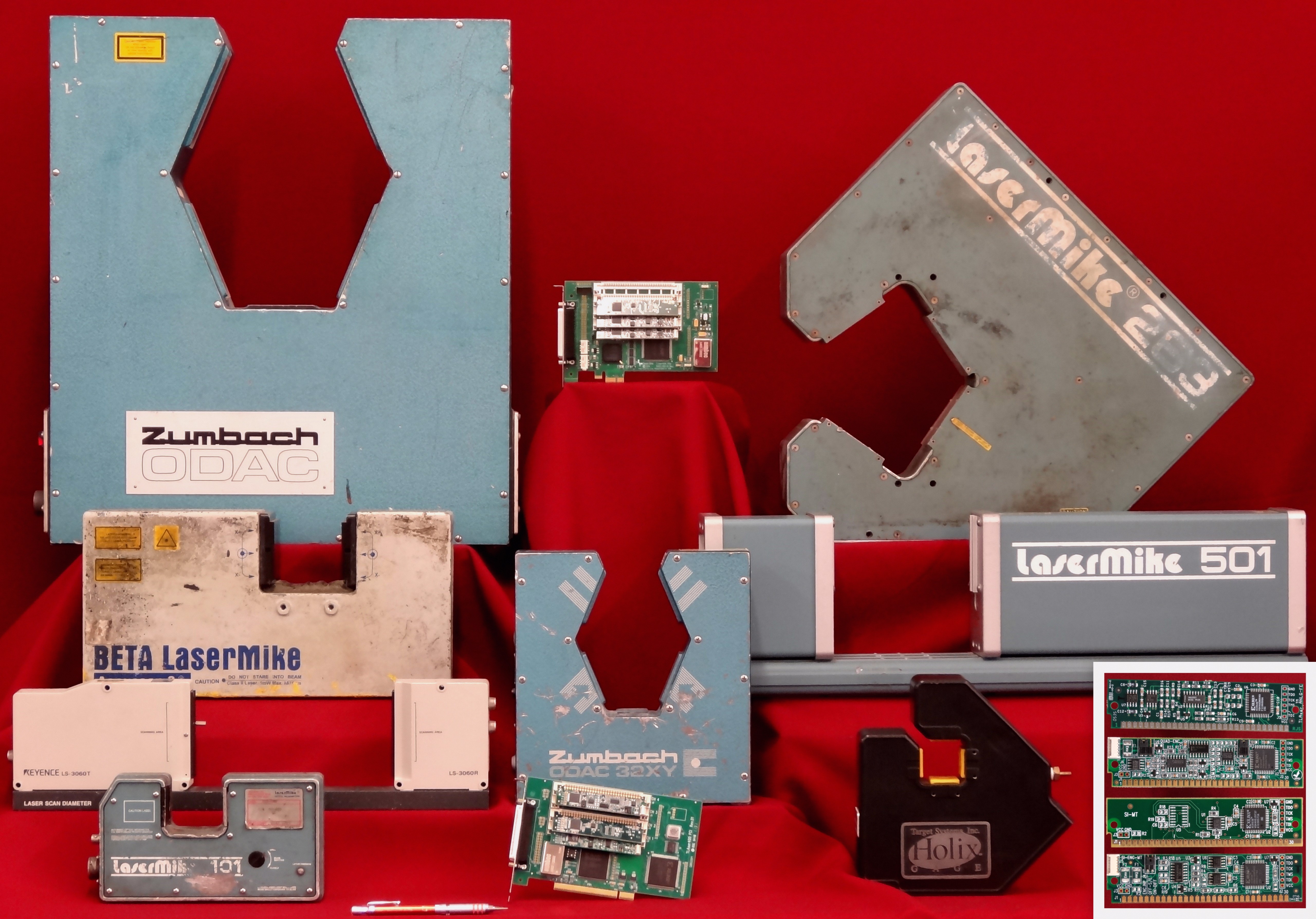 The card hosts up to four “daughter cards.” Each daughter card, or compatibility module, is selected based on the make and model of the associated laser micrometer.
