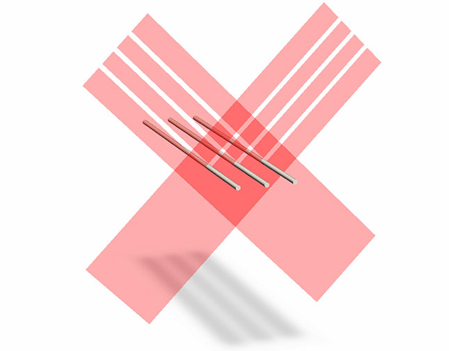 ![]() Dual-axis, multi-part—simultaneously measure the diameter and position of each part from two viewpoints. The axes of measurement are coplanar and perpendicular to each other. This requires that laser light, in each axis, pass above and below each part. The number of parts that can be measured at once is not limited by software. Read more here. |