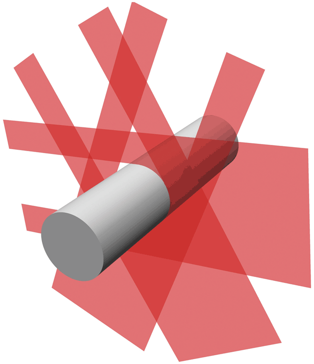 Triple-Axis, outside diameter—measure the diameter of a single part from three viewpoints. The three measurements are coplanar and are separated by 60 degrees from each other. The average of the three measurements is also calculated. |